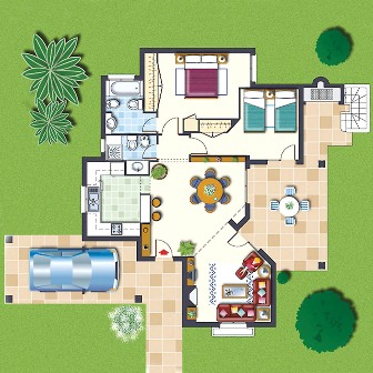 Berendezett alaprajzok, ahol már jól láthatóak a különböző funkciók.