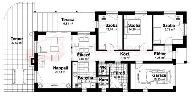 A hangsúly elsősorban a funkciók egymáshoz való viszonyán, és a bútorozás helyigényén van.